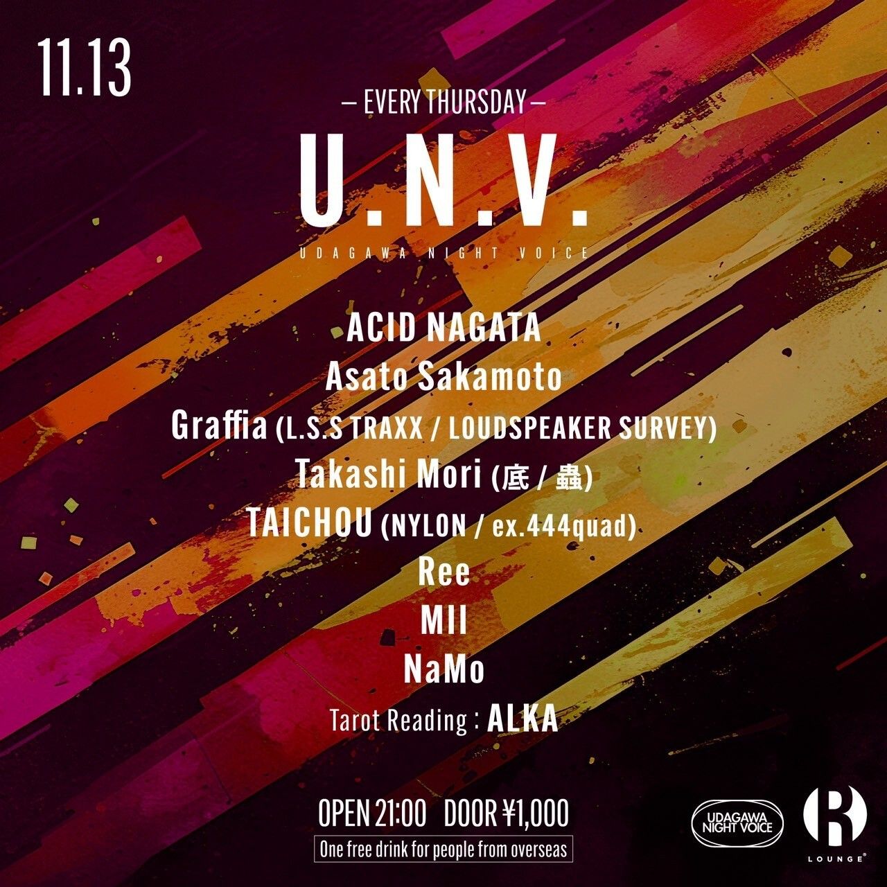 「U.N.V. is a regular Thursday party at R Lounge, which explores good DJs/parties.」