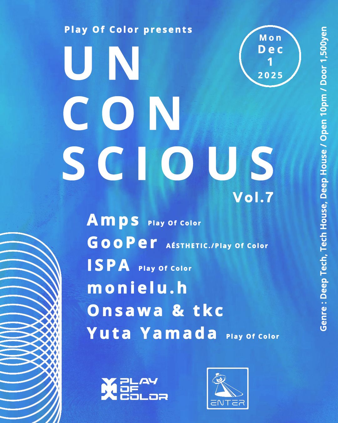日本発のディープテック/テックハウスレーベルであり、これまでKolter、Vitess、Robbie Doherty、RUZE、THEOS、Dennis Quin、Michel De Heyなど実績のあるDJからアップカミングなDJまで多くのDJを招聘し、また海外DJからもサポートされる楽曲をリリースしてきた〈Play Of Color〉主催のUNCONSCIOUSが第7回目の開催を迎える。