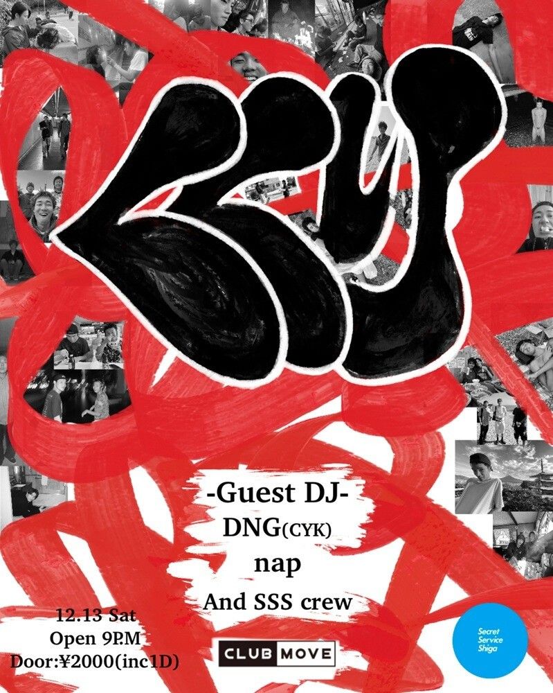 It's finally here... the time to forget 2025! With Christmas and the end of the year fast approaching, we're looking forward to the 4th SSS party, "Kukuri," taking place at @clubmoveshiga!! Let's dance to celebrate all the good vibes we've felt and experienced this year. This time, we've invited @dng1203kenjiro, a senior from Shiga and member of the Tokyo-based house music collective CYK, and @kentaroshark, who is active mainly in Kyoto's West Harlem and embodies the spirit of house and the ideas of techno. Plus, we've got a fantastic lineup of two of my favorites currently active in Tokyo: @djca1ypso2, a DJ who'll make your heart dance and your body move, and @ryo___.ma, a DJ whose running shoes are a must-have if you want to dance! This time, all of SSS's DJs will be B2B three-legged racers. Each pair brings their own unique style to this incredibly special event. Let's forget about everything for just this day and "tie up" 2025 together⭐︎