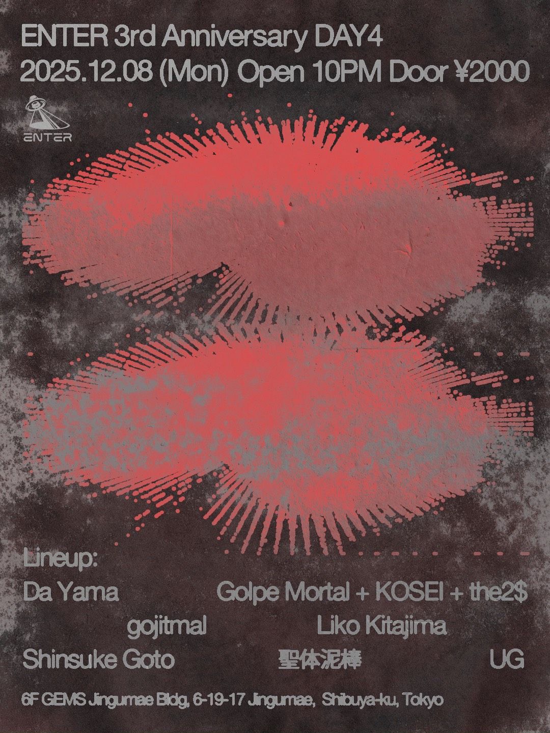 2022年12月15日にオープンしたENTER SHIBUYA。この度、3周年を祝した2週間に及ぶ9日間のアニバーサリーパーティを開催する。記念すべきDAY4は多様なヴァニューで活躍するテクノシーンの要人が集結。