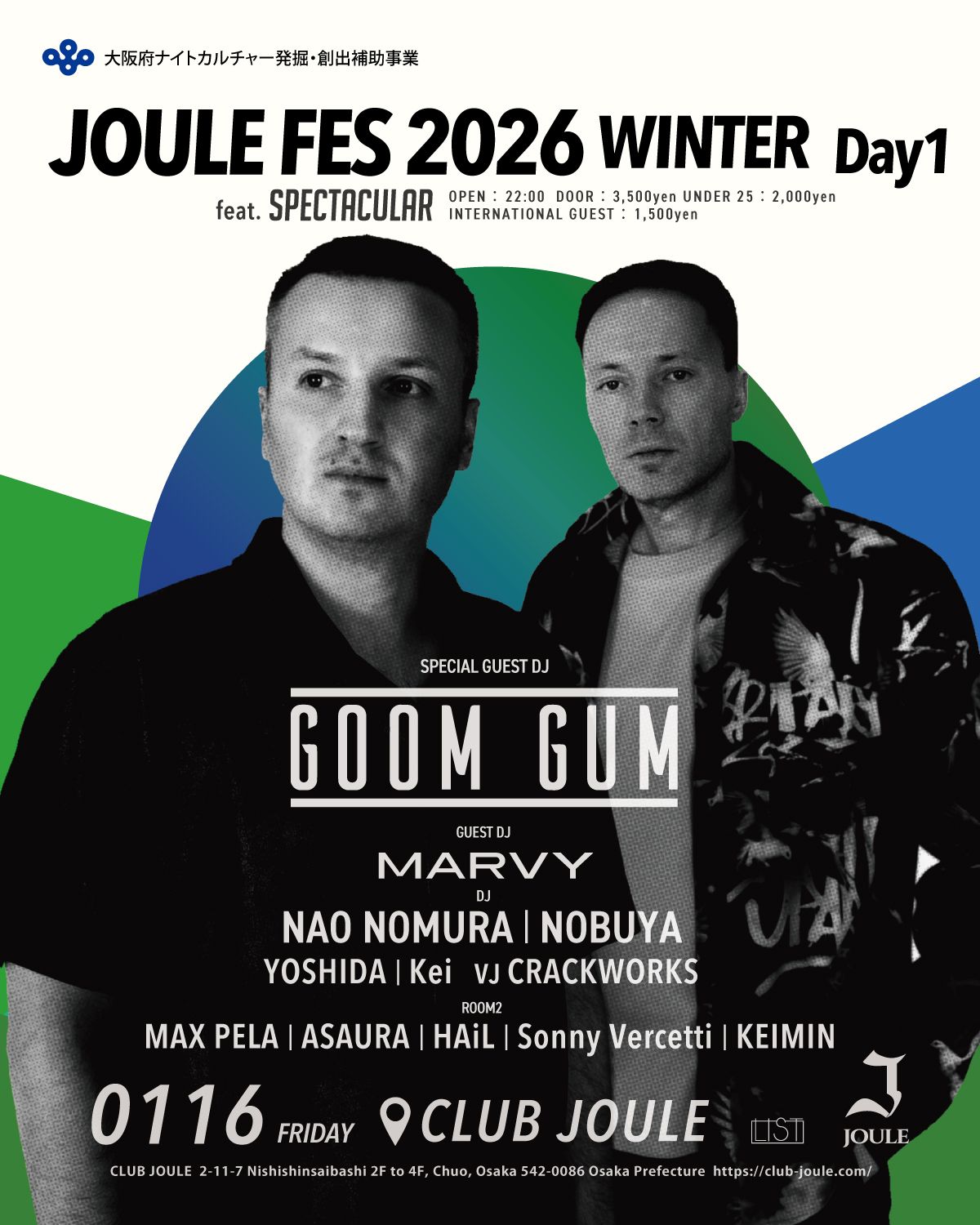 2026年最初のSPECTACULARに迎えるメインゲストはメロディック・テクノ/ハウスシーンを代表するアーティストGoom GumよりEvgeny Rudenko。Afterlife、Diynamic、Rose Avenueをはじめとする世界最高峰レーベルからのリリースを重ね、Argyとのコラボレーション曲「Pantheon」はBeatportメインチャート1位を獲得。Solomun、Tale Of Us、Pete Tong、Adam BeyerらトップDJからの継続的なサポートを受け、現在のシーンを象徴する存在として国際的評価を確立している。エモーショナルかつ洗練されたサウンドデザインと、フロアを掌握する構成力が生み出す完成度の高いプレイは必見。さらにZERO TOKYO「CARNIVAL」主宰のMARVYをはじめ、関西シーンを牽引するDJ陣が集結。特別な一夜をぜひフロアで体感してほしい。