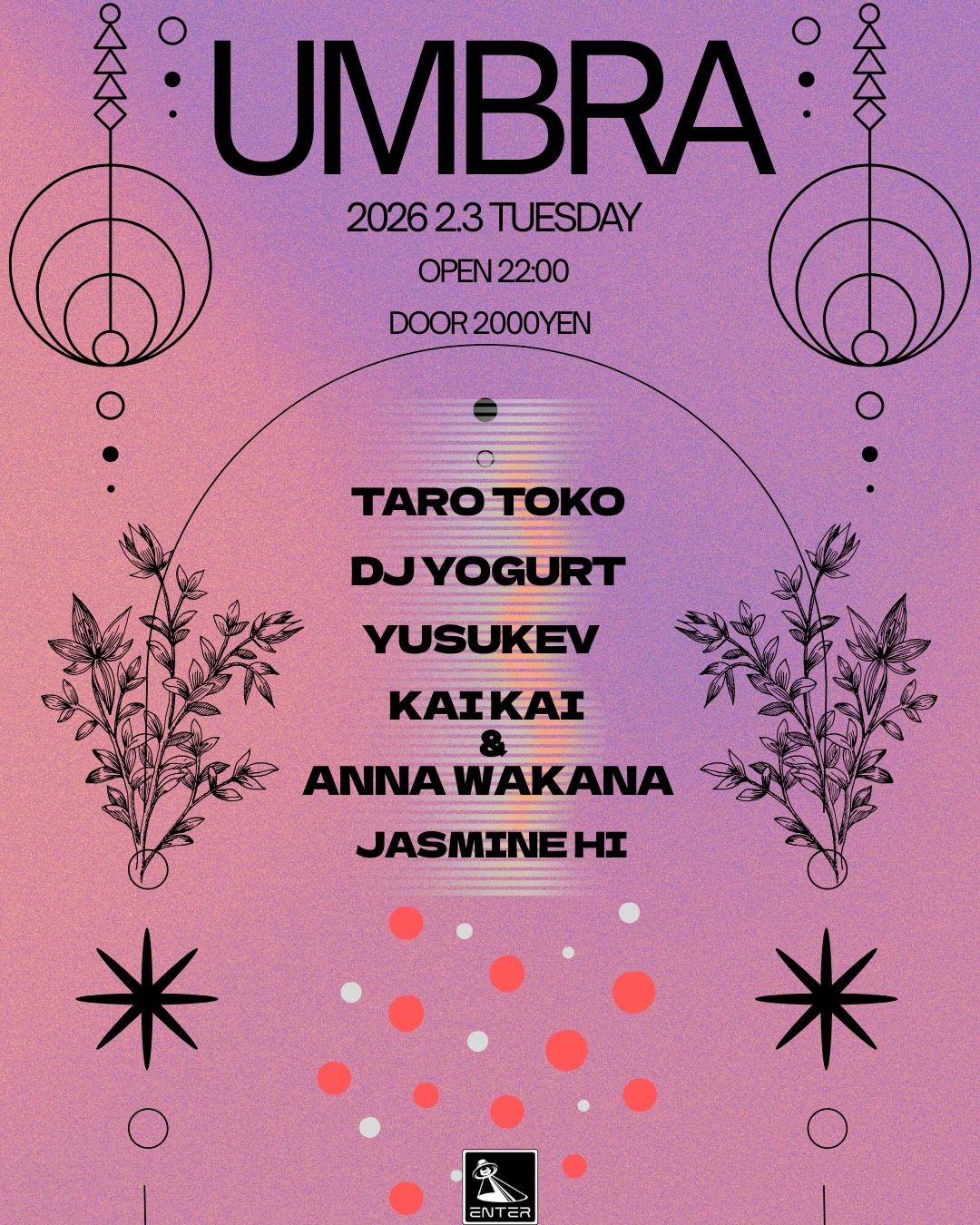 国内外で活躍する選りすぐりのアーティストたち — Taro Toko、DJ Yogurt、YUSUKEV、KAIKAI & ANNA WAKANA、JASMINE HI — が、それぞれの感性でダンスフロアに弾みをつける。