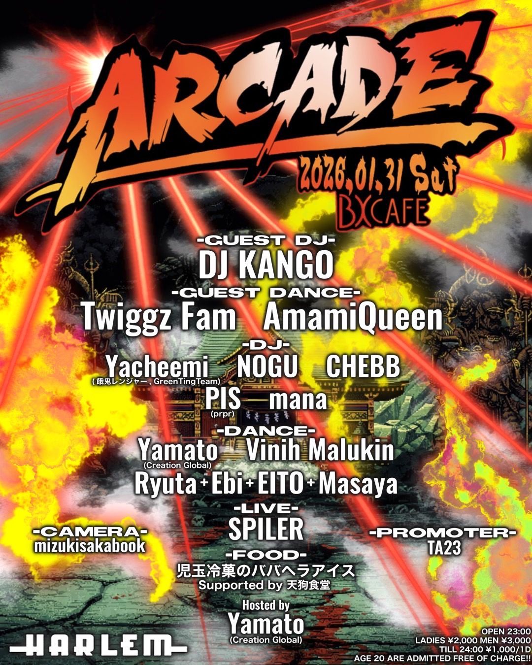 - LADIES ¥2,000 MEN ¥3,000 ※ till 24:00 ¥1,000/1d ※ AGE 20 ARE ADMITTED FREE OF CHARGE!!