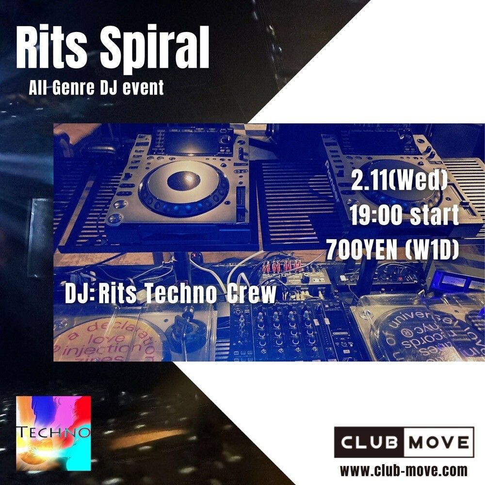 「Rits Spiral」は偶数月第2水曜日に開催されている、立命館大学のDJサークル「立命館テクノ部」によるオールジャンルイベントです。
