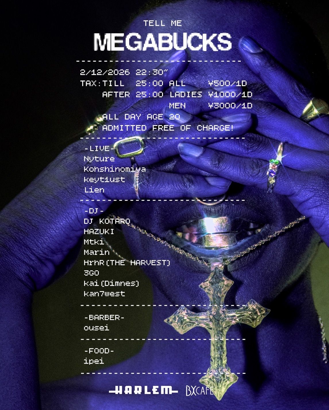 - LADIES ¥1,000/1d MEN ¥3,000/1d ※ TILL 25:00 ¥500/1d ※ AGE 20 ARE ADMITTED FREE OF CHARGE ALL DAY!!