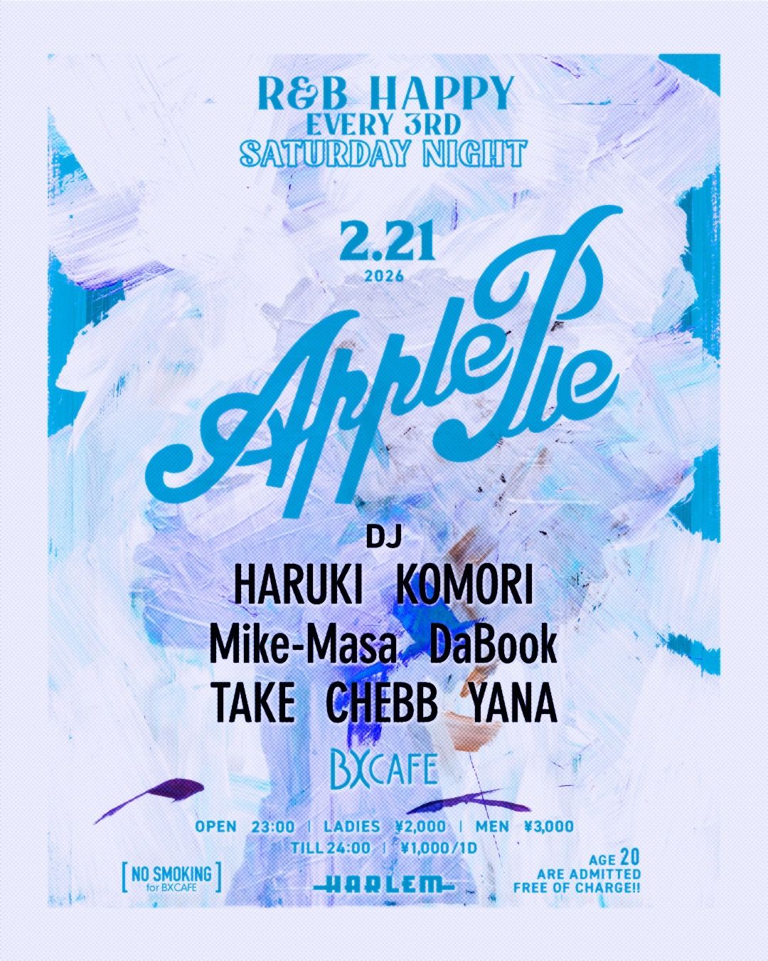 - LADIES ¥2,000 MEN ¥3,000 ※ till 24:00 ¥1,000/1d ※ AGE 20 ARE ADMITTED FREE OF CHARGE!!