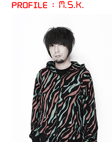 M.S.K. (Different / Roc Trax / Institubes) 1995年よりDJ、音楽制作活動を開始。M.S.K.、MAGDARIS(+DJ MAAR)、KAMIKAZE TOWN(+TURTLE YEAH!)などの名義で多数のプロデュース、リミックスを手掛ける。 自身のルーツであるパンク、ロック、ハウス、ヒップホップの初期衝動的エネルギー溢れるTUNEは要必聴。DJ及びダンスミュージックのネクストステージへの挑戦を続ける。 2008年春、フランスはパリのニュースクールなレーベル"INSTITUBES"より日本人初としてEP "M.S.K. / LUNAR" をリリース。ヨーロッパを中心に高い評価を受け、同収録曲 "SIDE STORY" は世界最大ダウンロードサイト "BEATPORT" エレクトロニカ部門で10位にチャートインするなど世界的大ヒットを記録。2010年、DEXPISTOLS主宰レーベル "ROC TRAX" より待望の1stアルバム "MASK MASK MASK" をリリース。今春、ロンドンの名門レーベル "Different Recordings" より2nd EPのリリースを目前に控える。