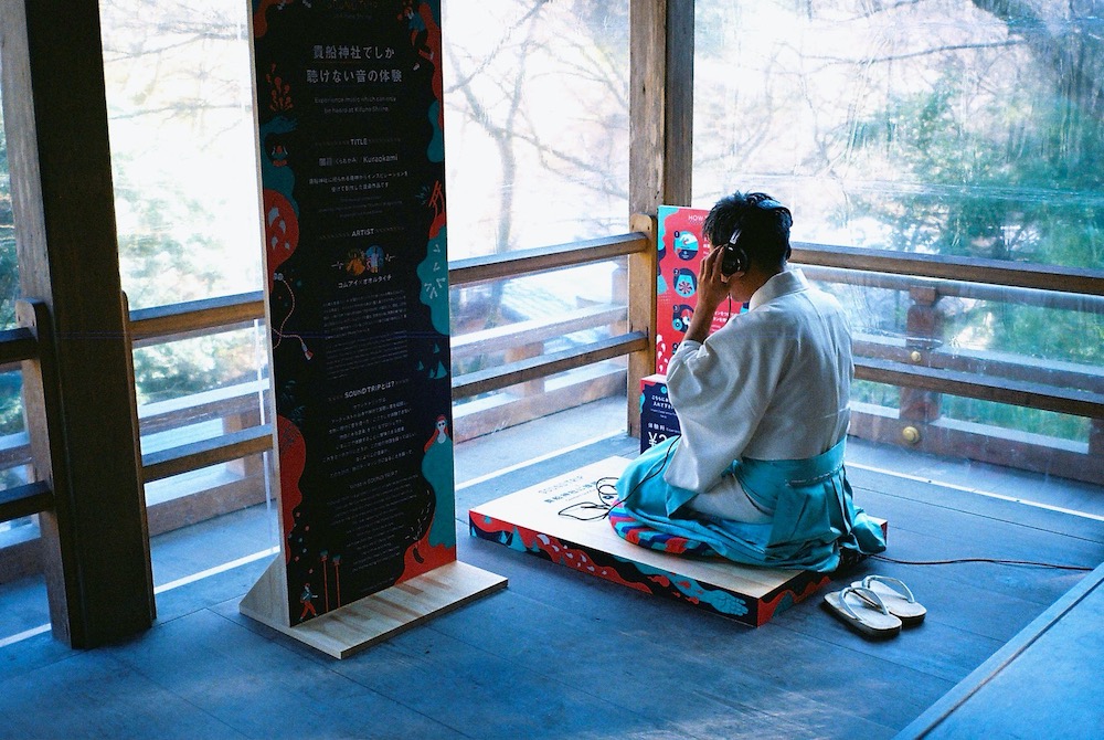 本サービスは、水の音や鳥の鳴き声など京都の寺社で流れる音を収録し、その音を使いながらそこに行かないと聴けない音楽体験を提供。訪れる参拝者は、指定の場所で体験料(300円)を支払い、その場所で音楽を聴くことができる。また、各所の受付で専用のQRコードを購入(500円)することで、音楽をお土産にすることもできる。